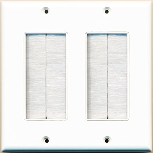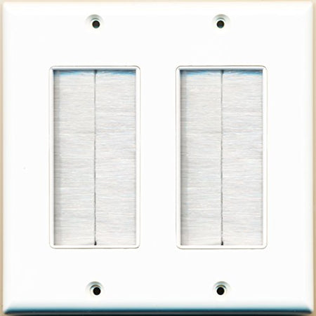 RiteAV - Dual Gang Wall Plate with Brush Bristles - White [Now Fits Larger Cables]