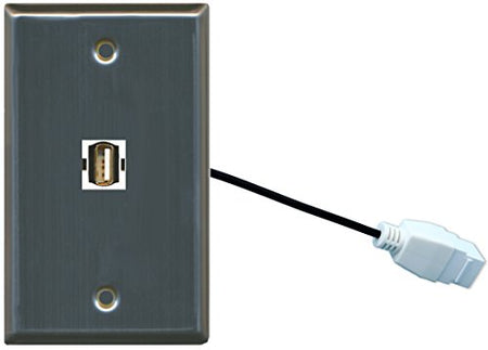 RiteAV (1 Gang Flat) USB Wall Plate w/ Pigtail Extension Cable Stainless Steel
