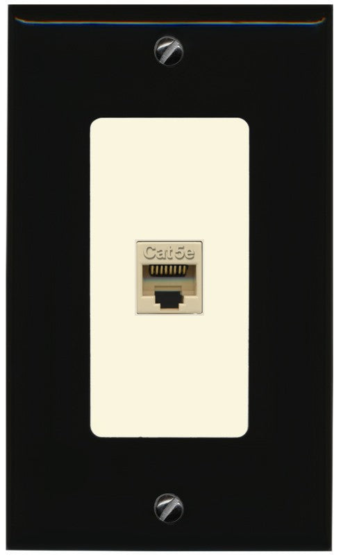 RiteAV 1 Port CAT5E-IVORY Wall Plate - 1 Gang Decorative [Black/Light-Almond]