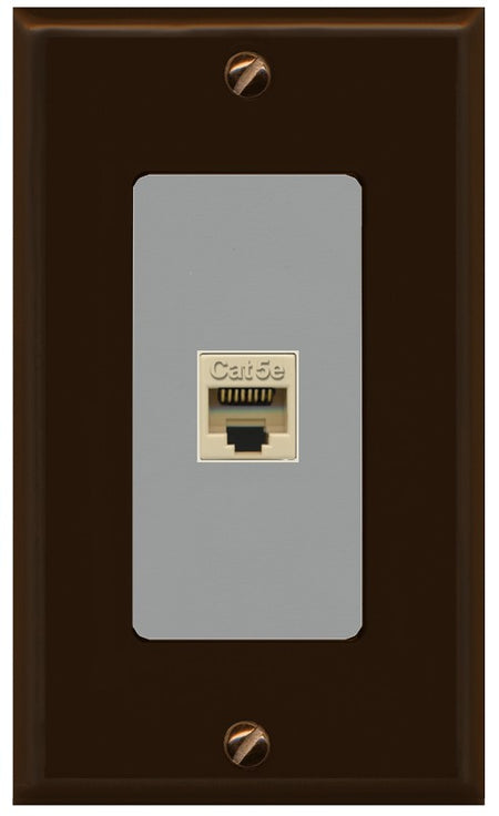 RiteAV 1 Port CAT5E-IVORY Wall Plate - 1 Gang Decorative [Brown/Gray]