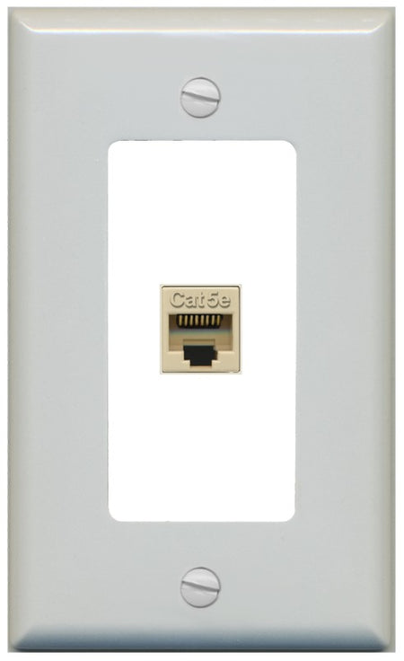 RiteAV 1 Port CAT5E-IVORY Wall Plate - 1 Gang Decorative [Gray/White]