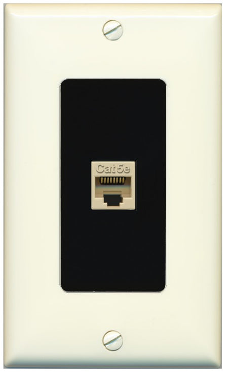 RiteAV 1 Port CAT5E-IVORY Wall Plate - 1 Gang Decorative [Light-Almond/Black]