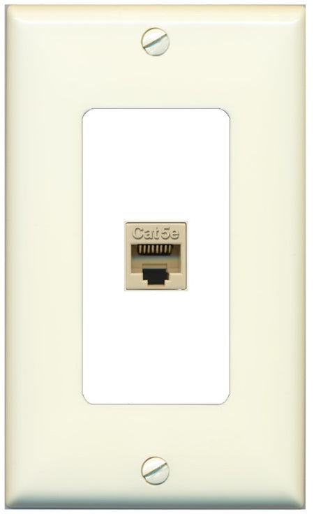 RiteAV 1 Port CAT5E-IVORY Wall Plate - 1 Gang Decorative [Light-Almond/White]