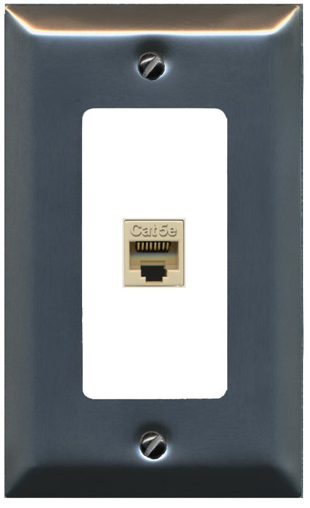 RiteAV 1 Port CAT5E-IVORY Wall Plate - 1 Gang Decorative [Brushed-Nickel/White]