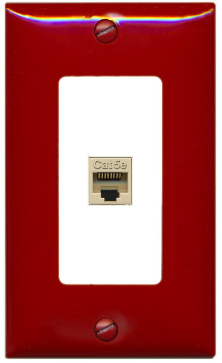 RiteAV 1 Port CAT5E-IVORY Wall Plate - 1 Gang Decorative [Red/White]
