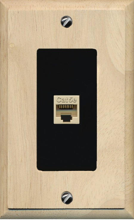 RiteAV 1 Port CAT5E-IVORY Wall Plate - 1 Gang Decorative [Wood/Black]