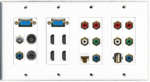RiteAV (4 Gang 2 Svga 4 HDMI Coax Cat6 2 Component Video 3.5mm Toslink USB Wall Plate