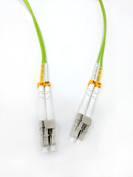 Details: FeaturesUltra Spec Cable's OM5 Fiber is a practical choice for wideband multimode fiber (WBMMF). Easy to deploy and designed to meet the demands of high-speed networks. Our cables are Laser Optimized to transmit 40Gb/100Gb up to 150M and the lime green colored jacket helps you to easily identify the difference between your OM4 and OM5 cabling.BenefitsPlug and play cables save time in the field since there is no onsite termination necessary. Fiber is preferred over copper because it provides increased bandwidth low signal loss and is immune to interference. It's a long term cost effective solution to securely transmit data requiring high transfer rates (i.e. Gigabit Ethernet Fibre Channel and Infiniband).ApplicationsComputer Networking - Optimized for Wideband Multimode (WBMMF).Military and Defense - Transmits data signals more clearly.Telecommunications - Carries data to internet cable TV and phone subscribers at greater bandwidths.Healthcare Industry - Used in imaging devices for exploratory or surgical procedures.It's also found in many industrial applications as well as R & D Labs in the above mentioned field.Our cables are compatible with all makes and models of switches routers enclosures patch panels media converters SFP modules and other network components.