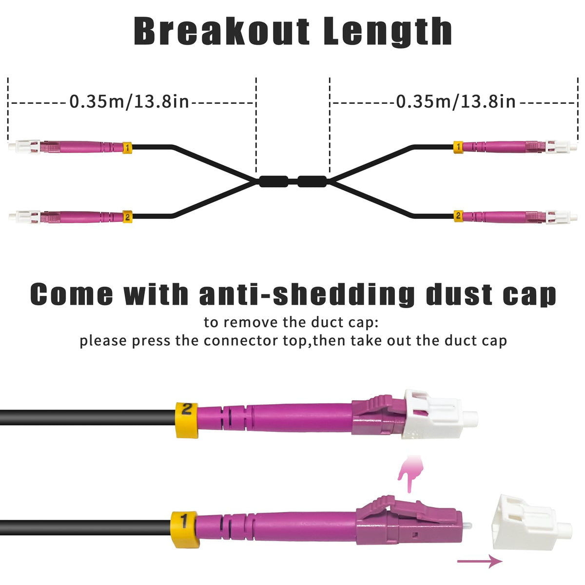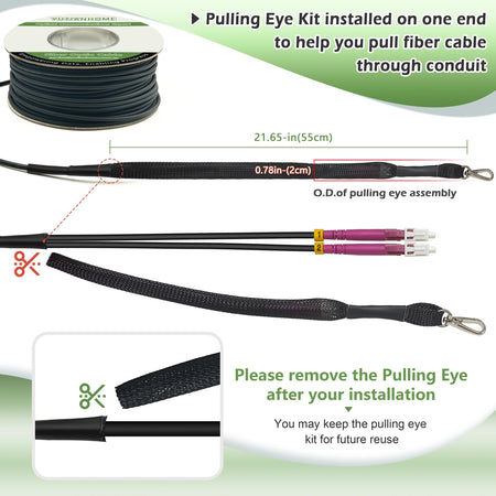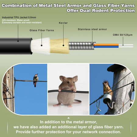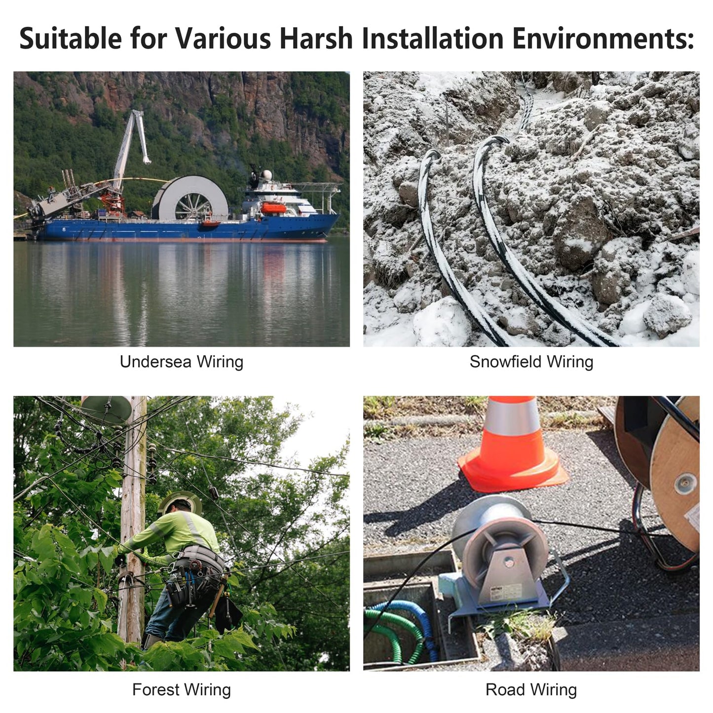 RiteAV - Industrial TPU OM4 Fiber LC to LC Outdoor Armored Fiber Patch Cable, Duplex Multimode Fiber Optic Cable 10Gb, MMF 50/125, OM4 LC-LC with Pulling Eye Kit Installed on one end