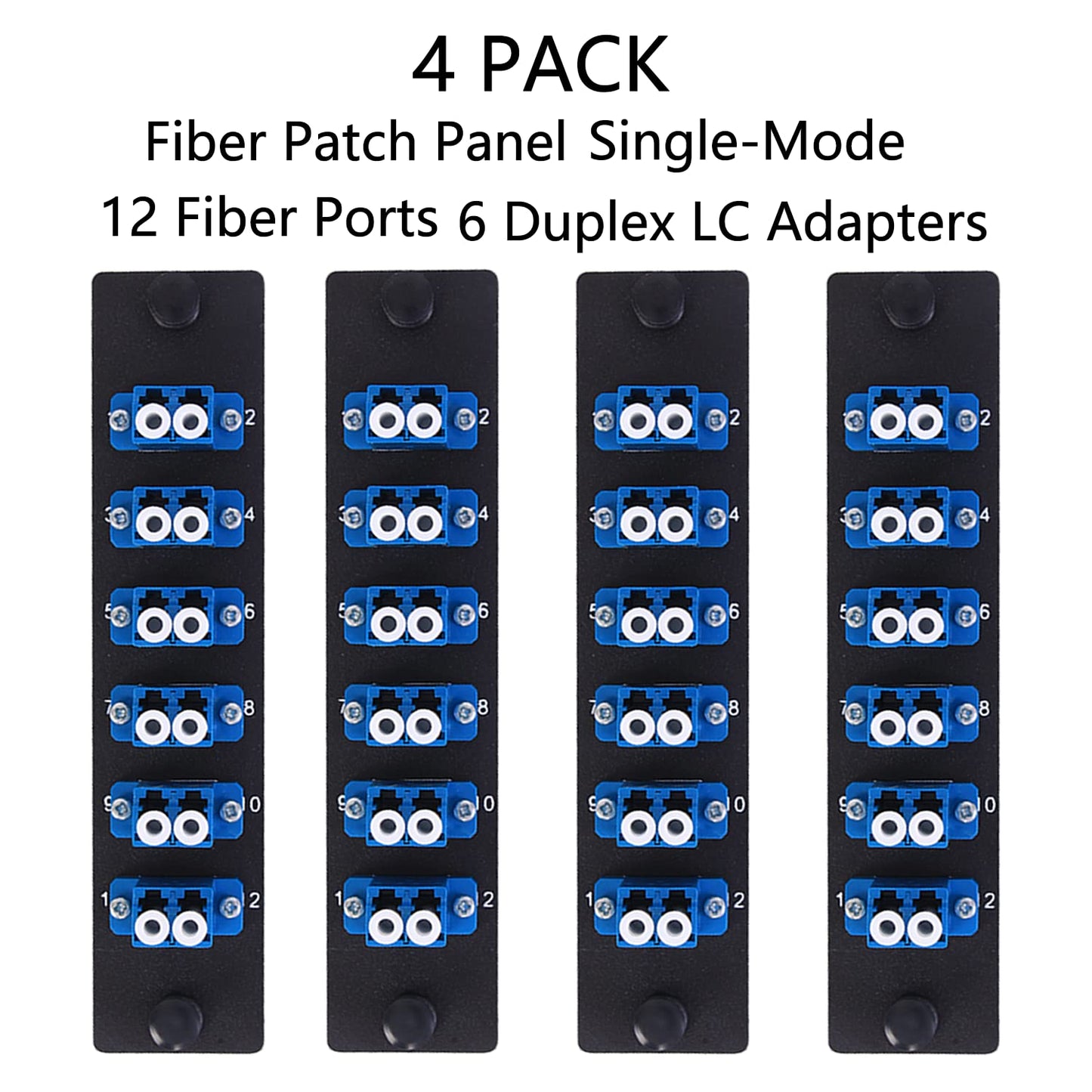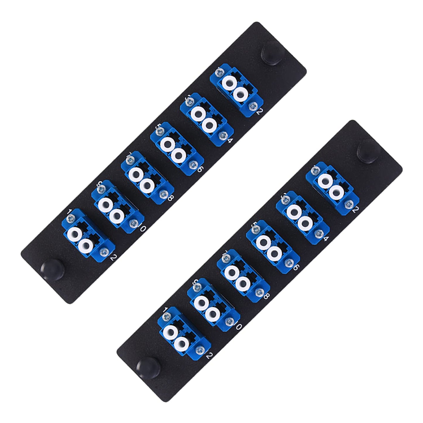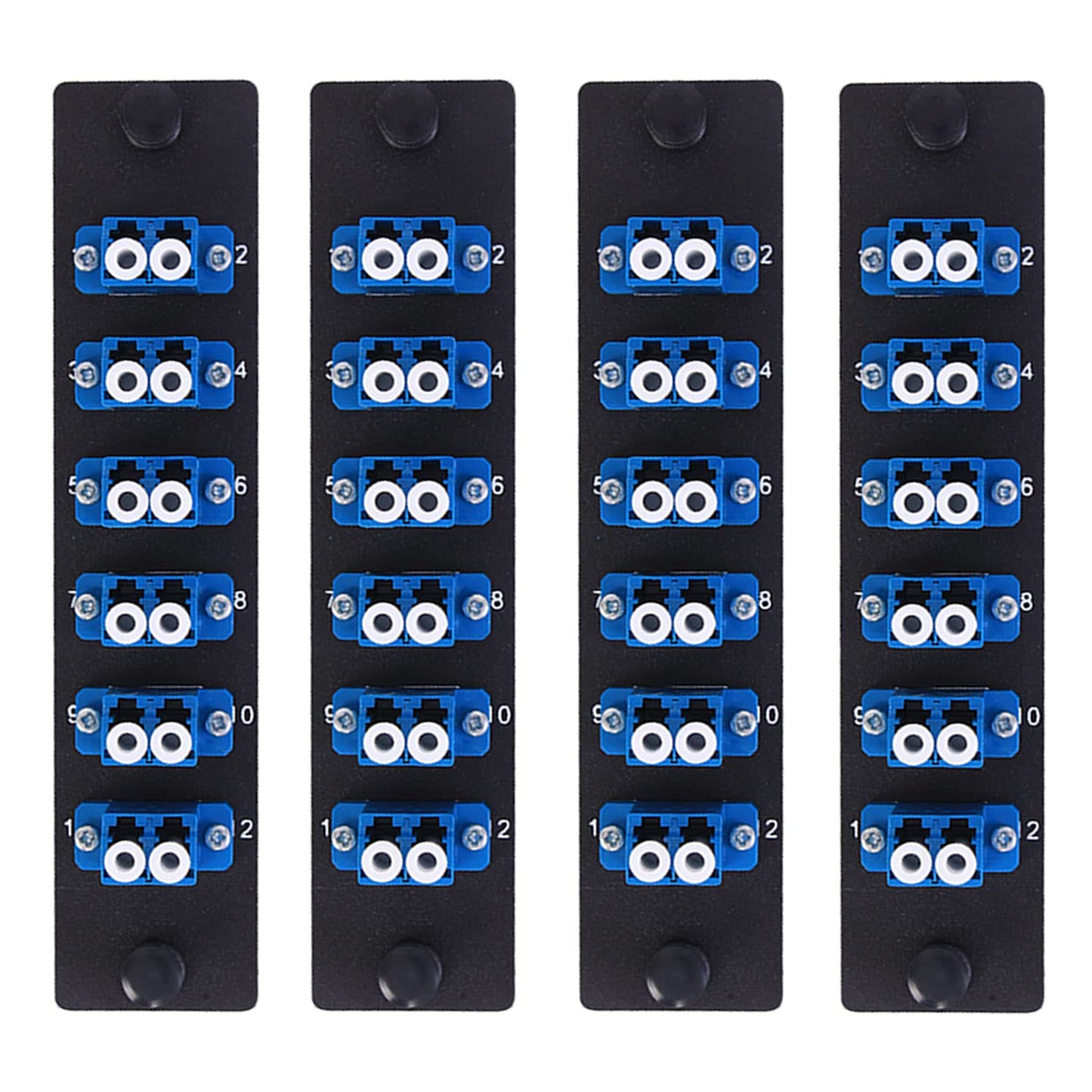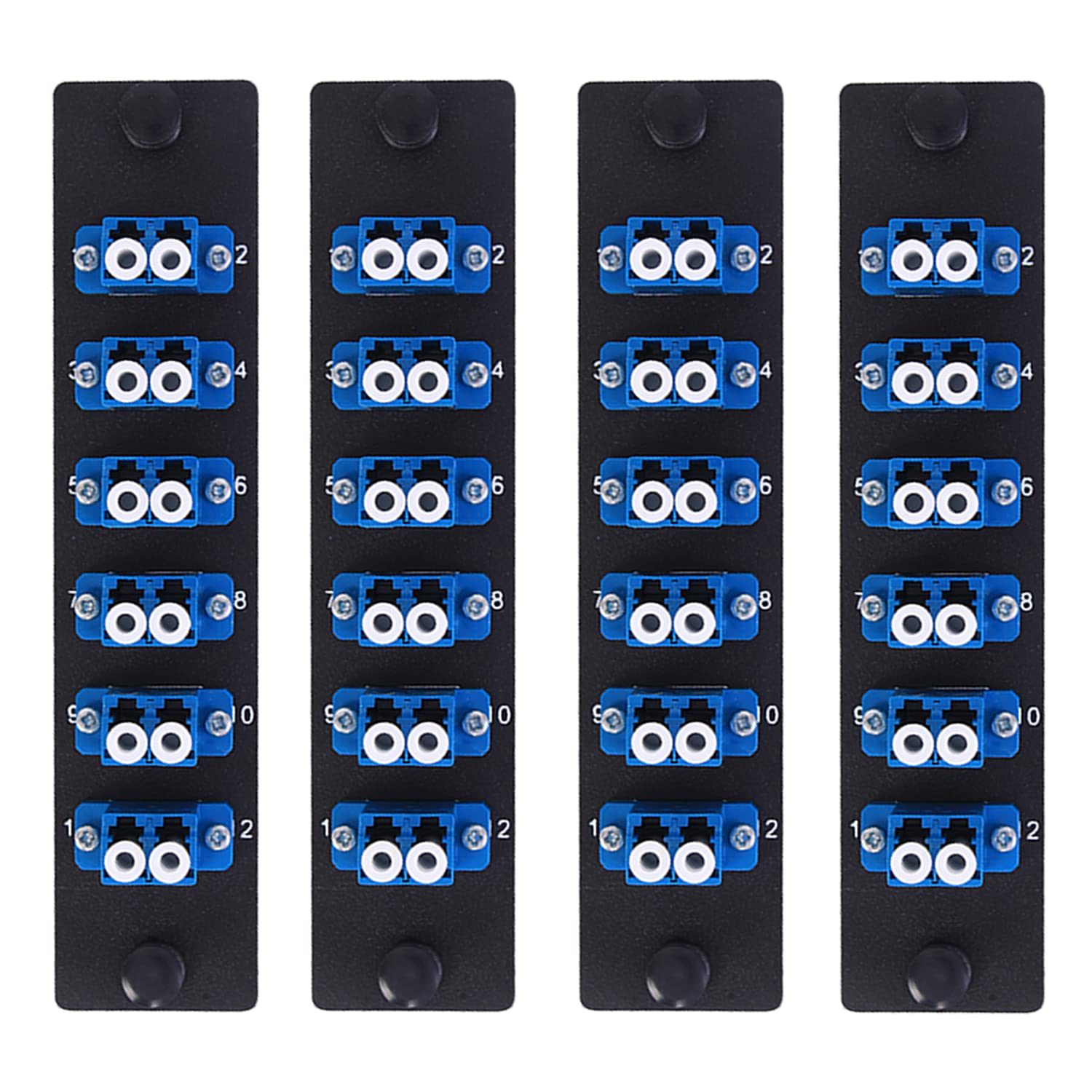 - 4PCS LGX Footprint Fiber Patch Panel Loaded with 6 Duplex LC 12 Fiber Ports Adapters, Streamlines Fiber Optic Cable Patching Ceramic Inserts, Constructed in High Quality Steel with Black Color Electro Static Powder Coating;★ LC-LC Duplex Fiber Optic Couplers/Adaptors to join two duplex fiber patch cables together. Securely connect 9/125 singlemode or 62.5/50/125 multimode fiber optic patch cables.