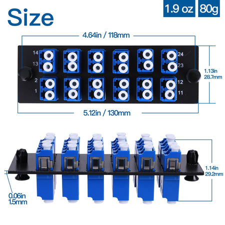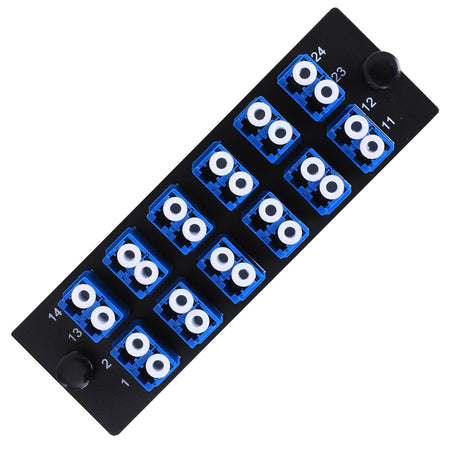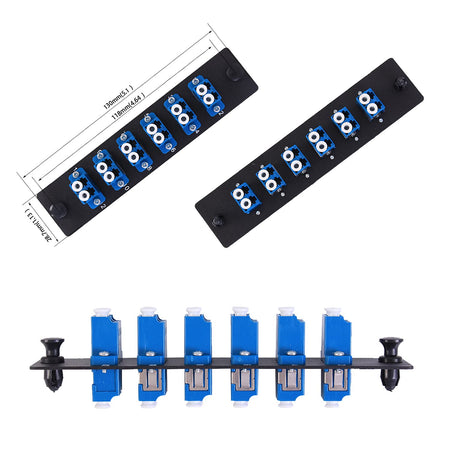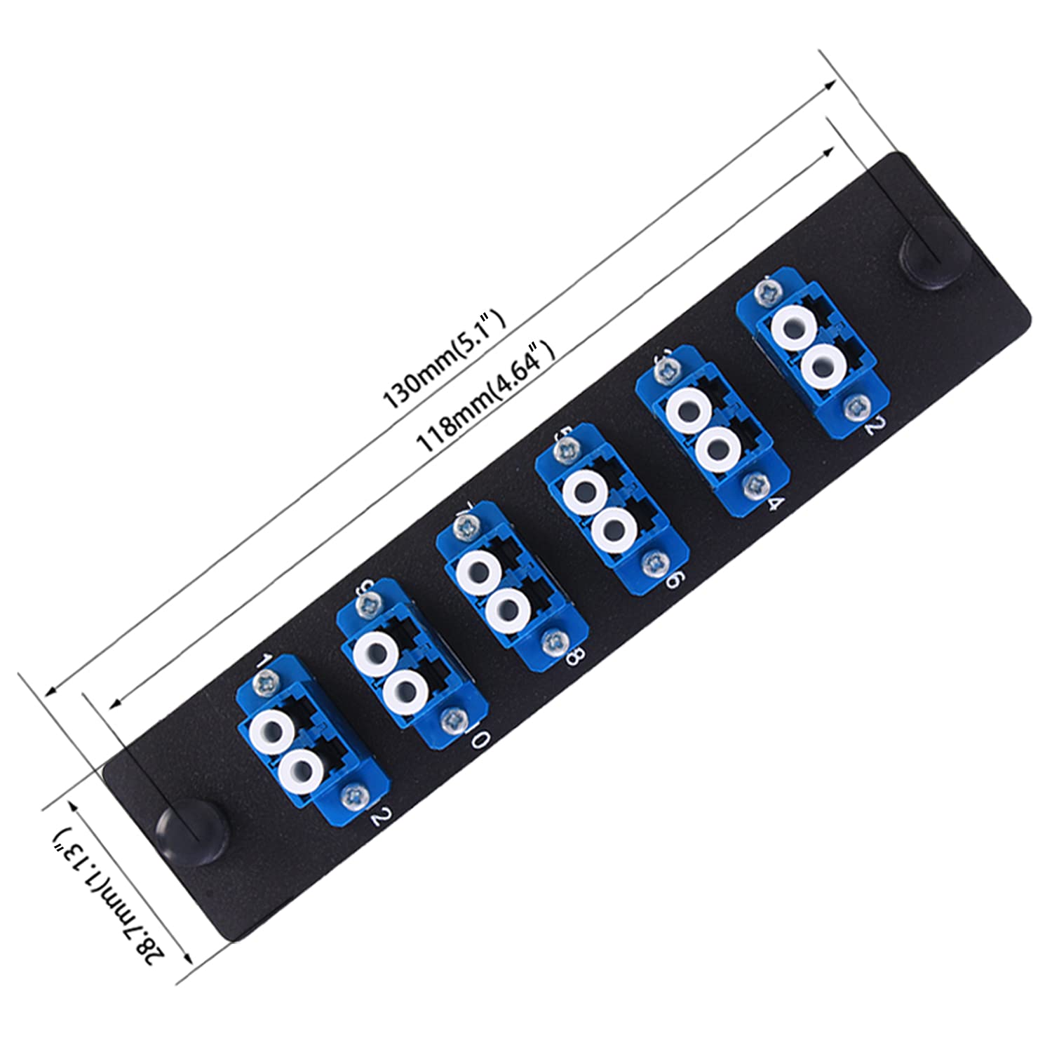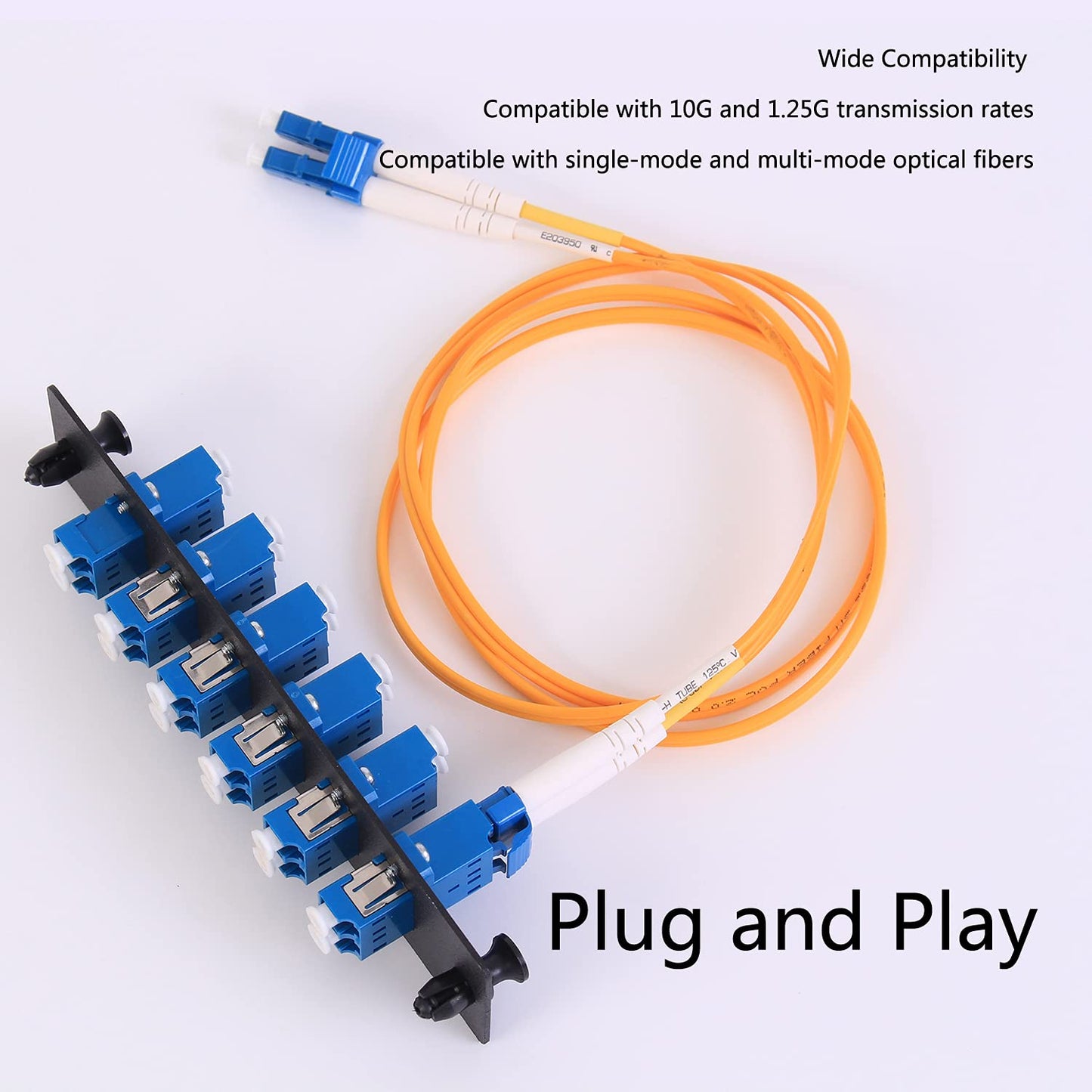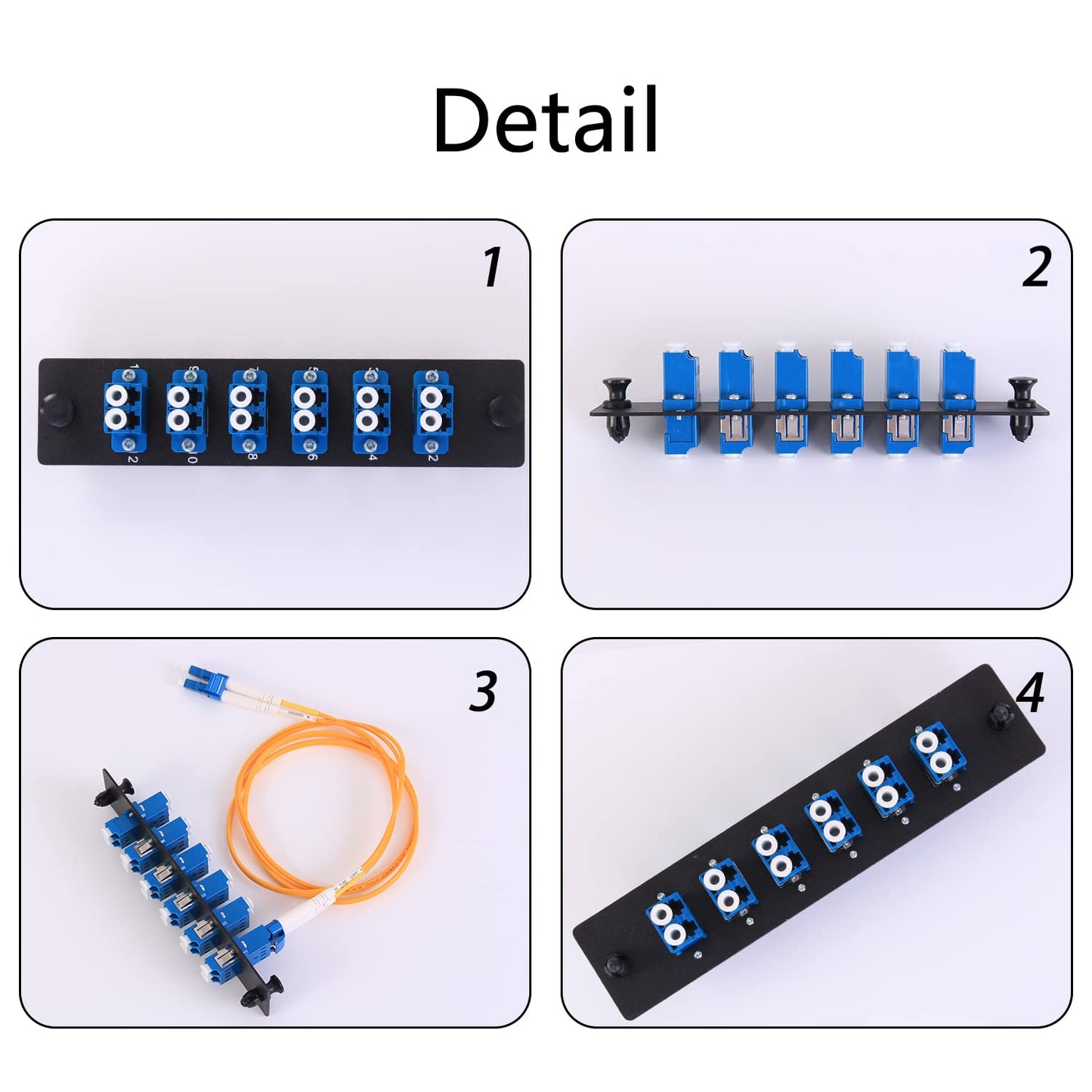 - 4PCS LGX Footprint Fiber Patch Panel Loaded with 6 Duplex LC 12 Fiber Ports Adapters, Streamlines Fiber Optic Cable Patching Ceramic Inserts, Constructed in High Quality Steel with Black Color Electro Static Powder Coating;★ LC-LC Duplex Fiber Optic Couplers/Adaptors to join two duplex fiber patch cables together. Securely connect 9/125 singlemode or 62.5/50/125 multimode fiber optic patch cables.