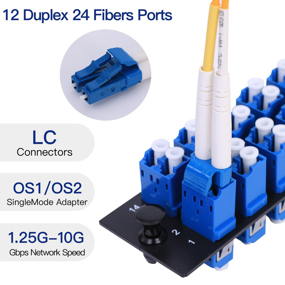 - 【Plug and Play】Feature a Simple-Snap-in Mechanism for Quick Tool-less Installation (no tool required),6 x Duplex LC Couplers 12 Fiber Ports Maximizes rack space; LGX Footprint Fiber Patch Panel Quick Field Installation in Organizes and secures Network Connections, Minimizes downtime during routine network maintenance.