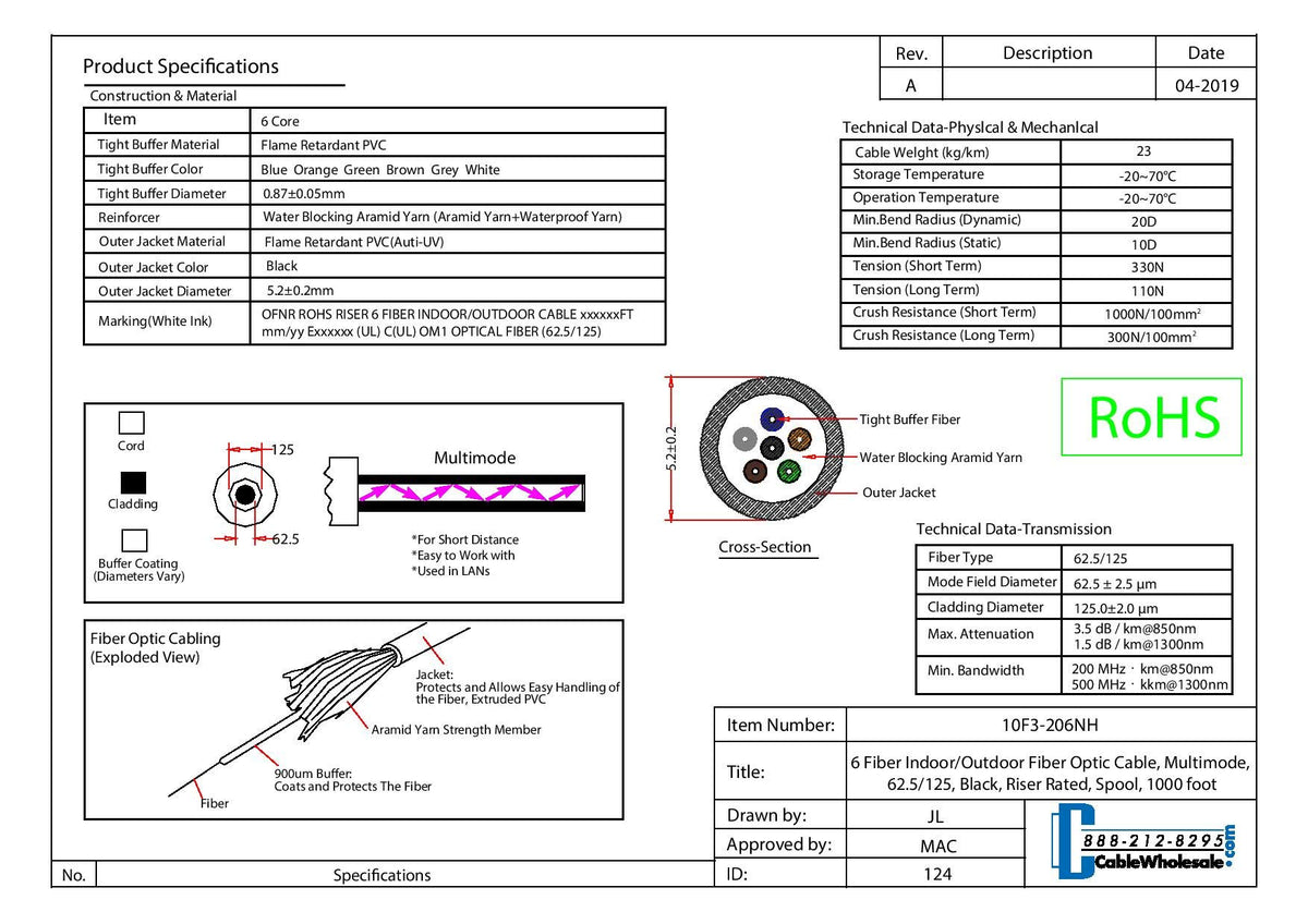 - UNIVERSAL COMPATIBILITY AND COMPLIANCE: This Graded-Step Core Fiber optic is optimized to work with various fiber optic equipment using light wave lengths of 850nm (nanometers) or 1300nm. The cable is Riser Rated (CMR) and is compliant with UL-1666, TIA/EIA 492AAAA-A, IEC 60793-2-10 and ISO/IEC 111801 (type OM1 fiber).