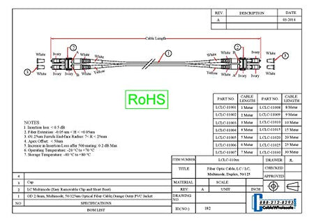 Details: Fiber optic Cable, LC / LC, Multimode, Duplex, 50/125, 10 meter (33 foot)