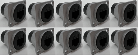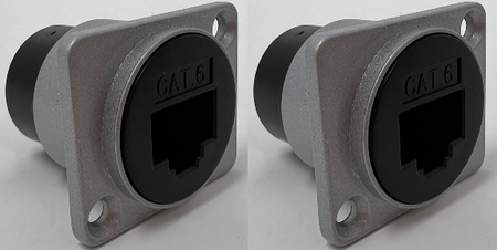 Cat 6 D Series Heavy Duty Chassis Panel Mount Connector Pass Through Solderless Bulkhead Coupler, Silver Metal Housing