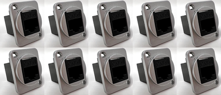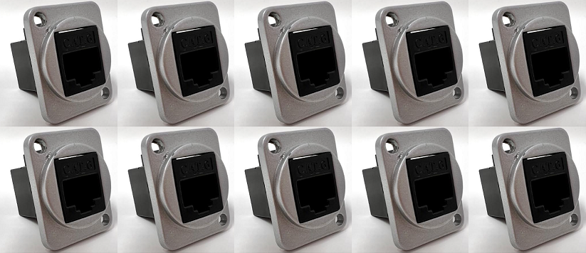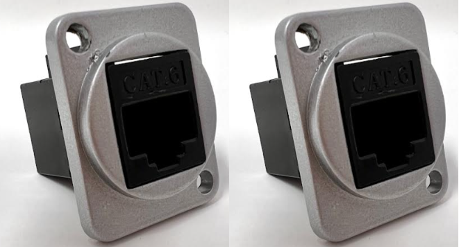Cat 6 D Series Chassis Panel Mount Connector Pass Through Solderless Bulkhead Coupler, Silver Metal Housing/Black Cat 6