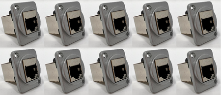 Cat 6A D Series Chassis Panel Mount Connector Pass Through Solderless Bulkhead Coupler, Silver Metal Housing