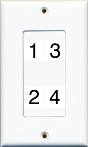 Custom 1 Gang Decorative Style White Wall Plate with 4 Keystone Ports