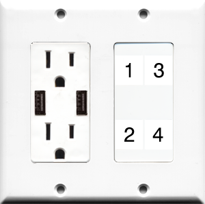 Custom 2 Gang USB Charger + Outlet Wall Plate with 4 Keystone Ports