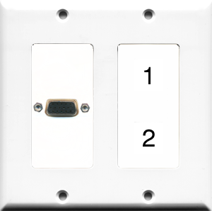 Custom 2 Gang VGA White Wall Plate with 2 Keystone Ports