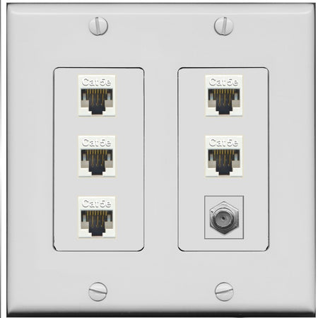 RiteAV 5 Port Cat5e Ethernet and 1 x Coax Wall Plate - 2 Gang [Gray/Gray]