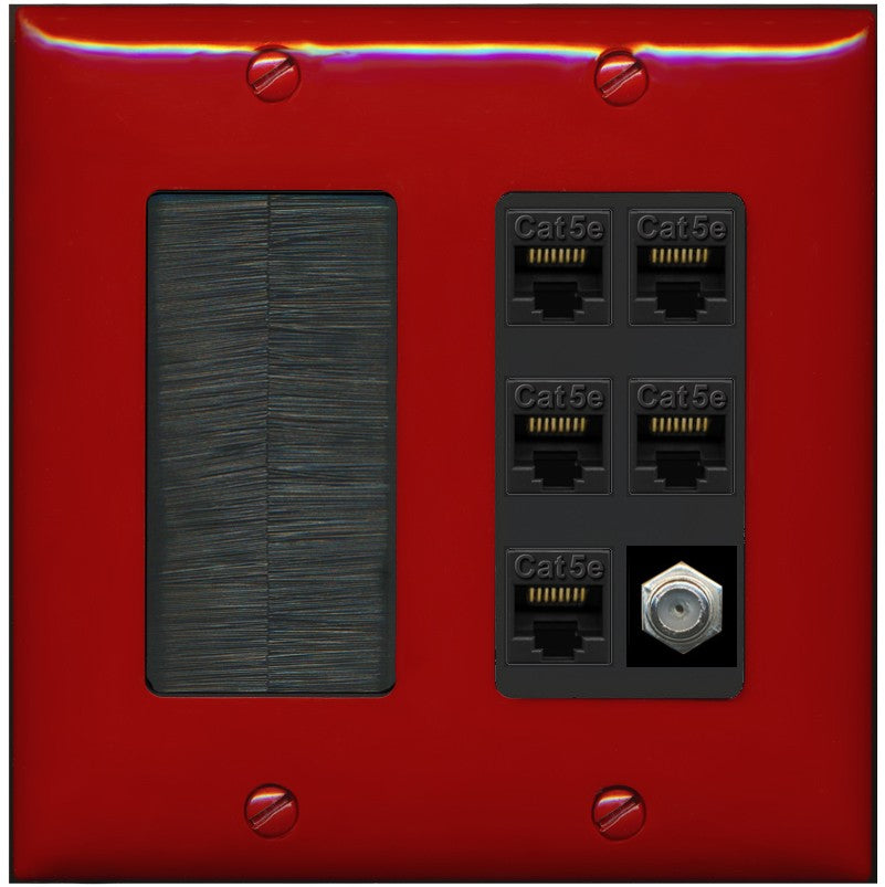 RiteAV 5 Port Cat5e Ethernet and 1 x Coax Wall Plate - Brush [Red/Black]