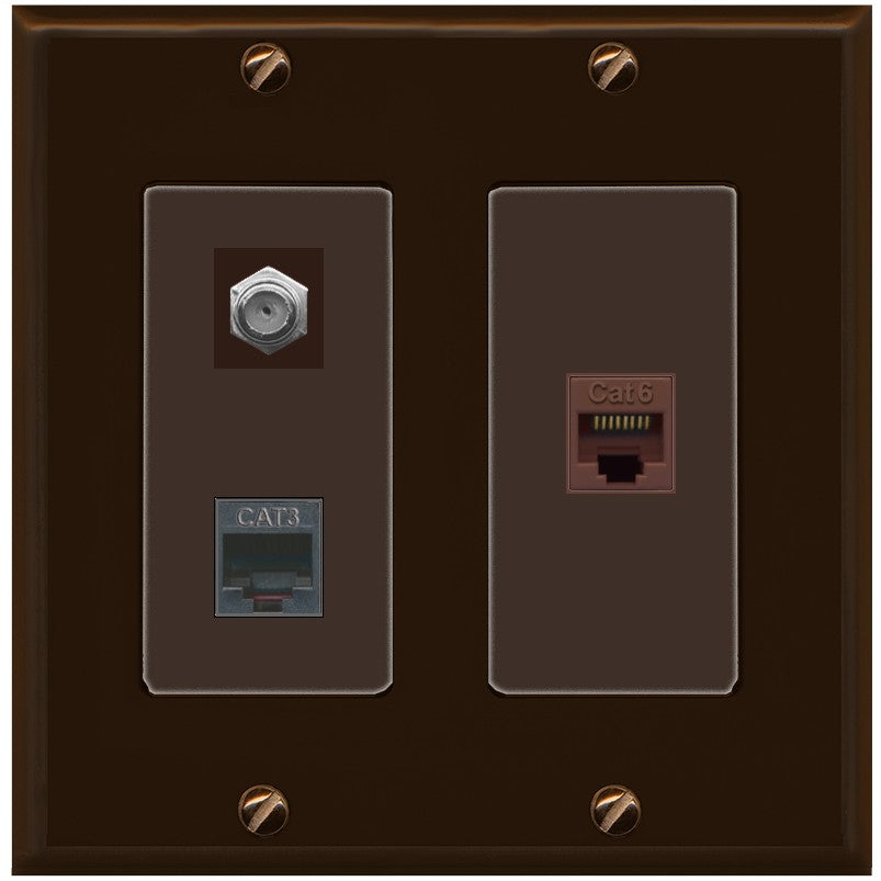 RiteAV 1 Port CAT6 Ethernet Coax Phone Wall Plate - 2 Gang [Brown/Brown]