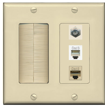 RiteAV 1 Port CAT6 Ethernet Coax Phone Wall Plate - Brush [Ivory/Ivory]