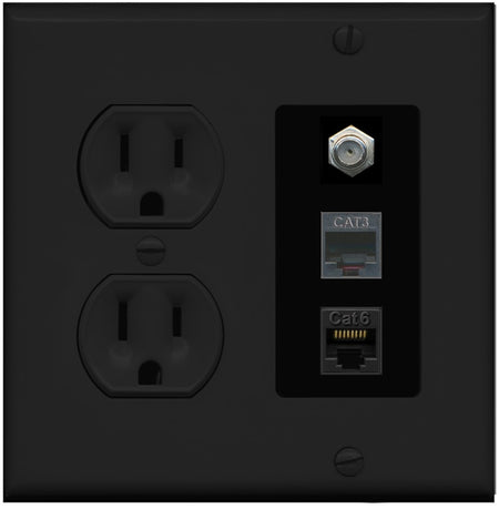 Increase quantity for RiteAV 1 Port CAT6 Ethernet Coax Phone Wall Plate - Round Outlet [Black/Black]