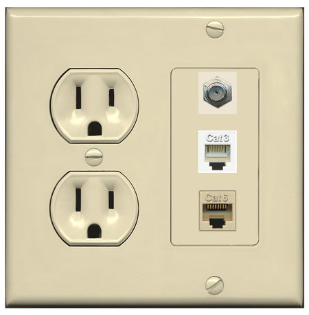 RiteAV 1 Port CAT6 Ethernet Coax Phone Wall Plate - Round Outlet [Ivory/Ivory]
