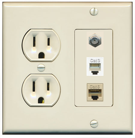 RiteAV 1 Port CAT6 Ethernet Coax Phone Wall Plate - Round Outlet [Light-Almond]