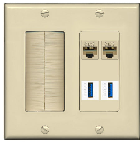 RiteAV 2 Port Cat6 2 USB3 Wall Plate - Brush [Ivory/Ivory]