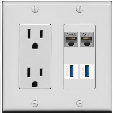 RiteAV 2 Port Cat6 2 USB3 Wall Plate - Outlet [Gray/Gray]