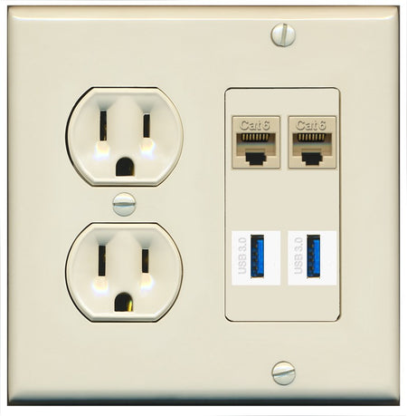 Decrease quantity for RiteAV 2 Port Cat6 2 USB3 Wall Plate - Round Outlet [Light-Almond]