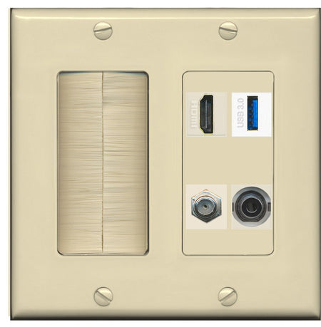 RiteAV HDMI and Coax USB3 + 3.5mm Jack Wall Plate - Brush [Ivory/Ivory]