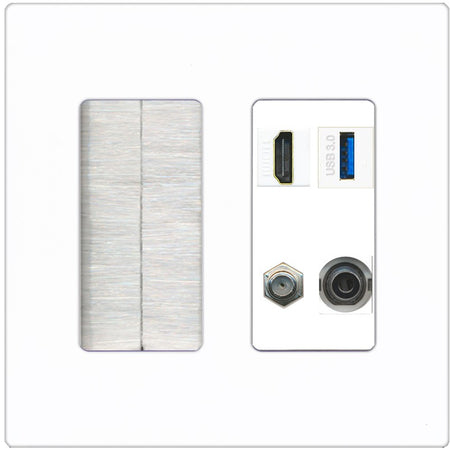 RiteAV HDMI and Coax USB3 + 3.5mm Jack Wall Plate - Brush [Screwless White]