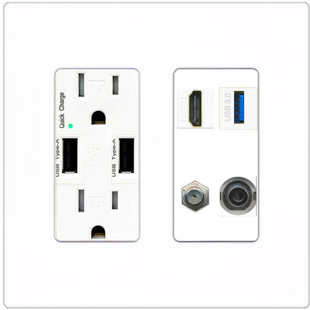 RiteAV HDMI and Coax USB3 + 3.5mm Jack Wall Plate - USB Outlet [Screwless White]