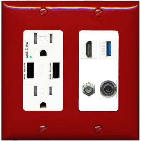 RiteAV HDMI and Coax USB3 + 3.5mm Jack Wall Plate - USB Outlet [Red/White]