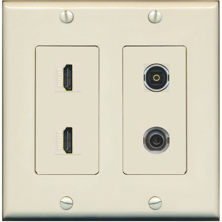 RiteAV 2 Port HDMI 1 Toslink 3.5mm Jack Wall Plate - 2 Gang [Light-Almond]