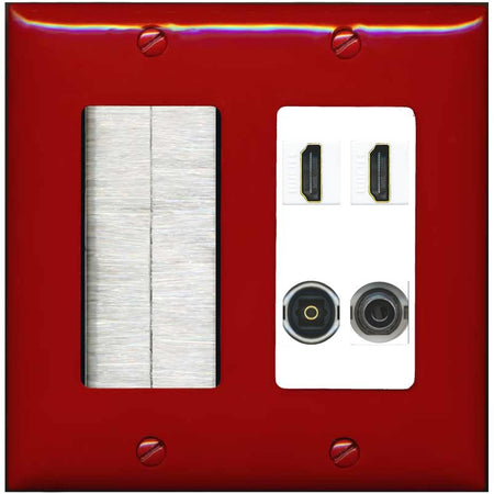 RiteAV 2 Port HDMI 1 Toslink 3.5mm Jack Wall Plate - Brush [Red/White]