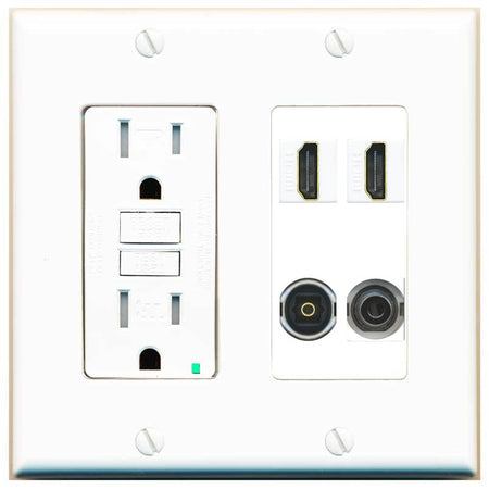 RiteAV 2 Port HDMI 1 Toslink 3.5mm Jack Wall Plate - GFCI Outlet [White]