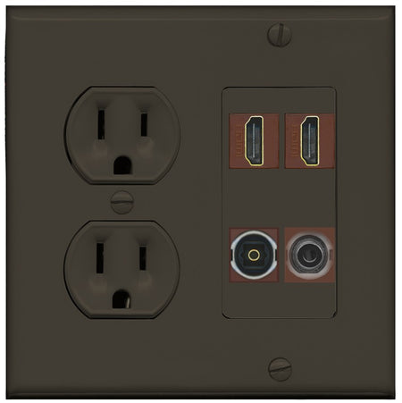 RiteAV 2 Port HDMI 1 Toslink 3.5mm Jack Wall Plate - Round Outlet [Brown/Brown]