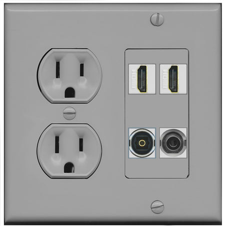 RiteAV 2 Port HDMI 1 Toslink 3.5mm Jack Wall Plate - Round Outlet [Gray/Gray]
