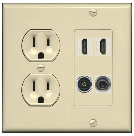 Decrease quantity for RiteAV 2 Port HDMI 1 Toslink 3.5mm Jack Wall Plate - Round Outlet [Ivory/Ivory]