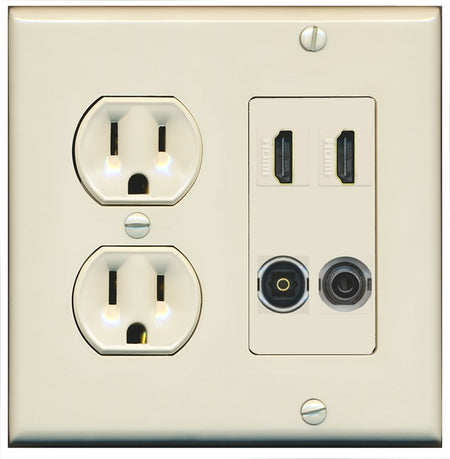 Decrease quantity for RiteAV 2 Port HDMI 1 Toslink 3.5mm Jack Wall Plate - Round Outlet [Light-Almond]