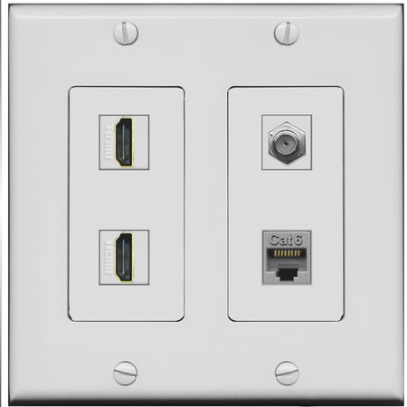 RiteAV 1 Port CAT6 Coax 2 HDMI Jack Wall Plate - 2 Gang [Gray/Gray]