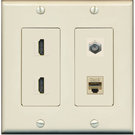 RiteAV 1 Port CAT6 Coax 2 HDMI Jack Wall Plate - 2 Gang [Light-Almond]