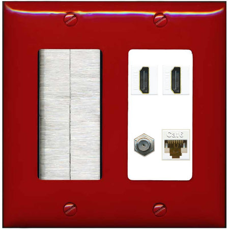 RiteAV 1 Port CAT6 Coax 2 HDMI Jack Wall Plate - Brush [Red/White]