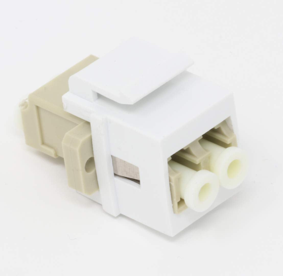 In summary, a Fiber Optic Keystone Coupler Jack LC Duplex Multimode provides a means to connect two LC duplex multimode fiber optic cables. It's typically used in structured cabling systems, data centers, and other network setups where quick and easy fiber optic connections are required for local and short-range communication.