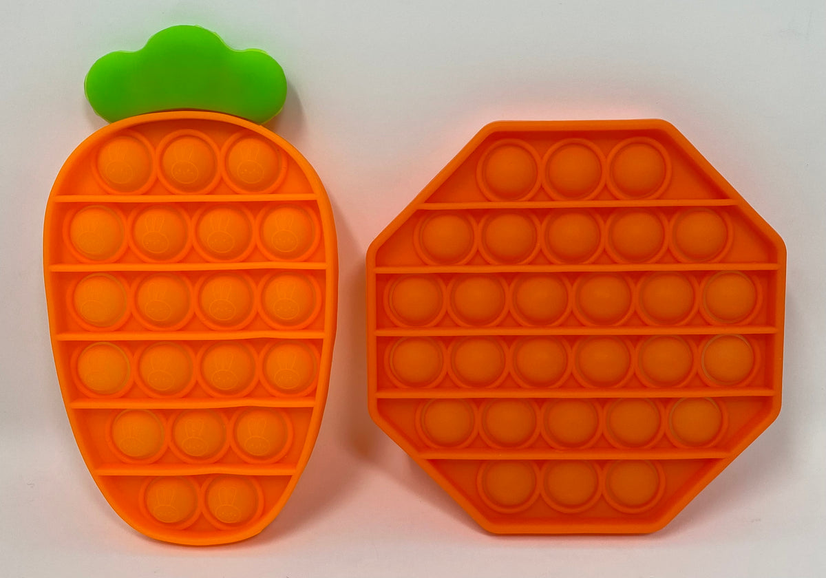Fidget Silicone Sensory Toy Orange Shapes Multi-Pack (Octagon and Carrot)